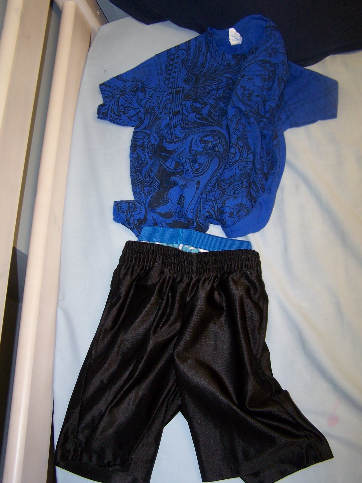 My little Jay is growing up so fast. It seems like just yesterday I was potty training him, now he is getting himself dressed! As I have written in previous blogs he has a pretty good sense of fashion too. Most of the time he picks out cute little matching outfits, but sometimes he thinks that just because its a green color it should match. Oh Jay, hunter green athletic shorts do not go with an olive green polo, not in our house at least. So we're still learning:) Sorry I am not one of those moms that will let him pick it out and then just go about the day, I have to have some agreement with him if I am going to take him out! I mean even Davon has had to change and outfit or two! Jay loves clothes, and loves when I "rock" up his tshirts! He is always telling me something new he wants on his shirts and he gets really down and out when I make something for Miles and not for him. A few days ago I told him to get dressed and this is what I came in to find..